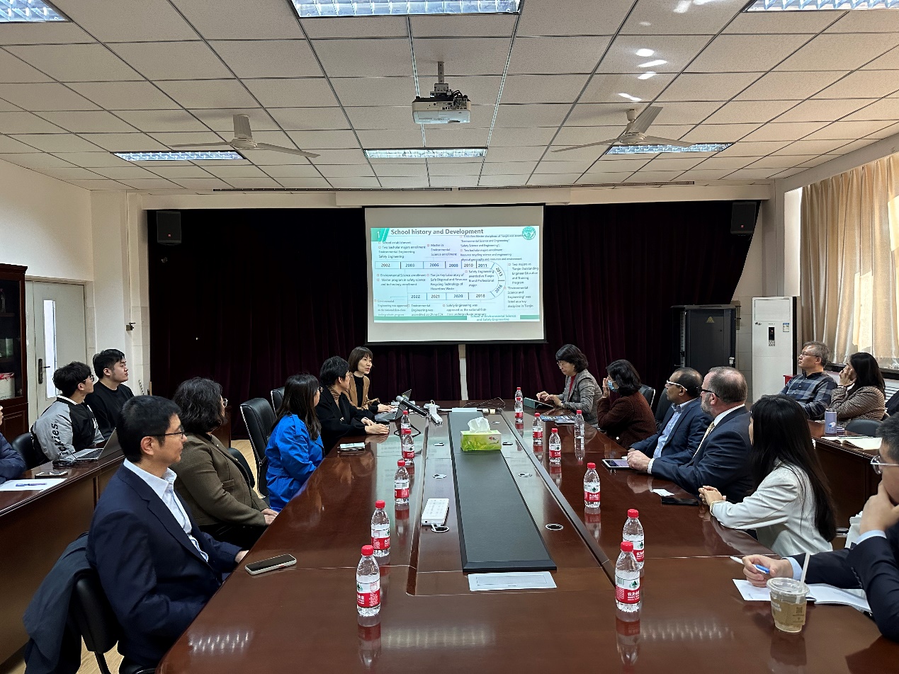 11月4日,中国教育国际交流协会中美教育交流项目代表团由中教国际教育中心副主任吴琴率队和美国马萨诸塞州大学达特茅斯分校、马里兰大学东岸分校、威斯康星大学欧克莱尔分校等校方代表一行10人到访我校,就未来与我校开展联合培养项目进行交流。我校国际交流处负责同志陪同代表团参观访问了机械工程学院、环境科学与安全工程学院、管理学院,并举办合作交流座谈活动。