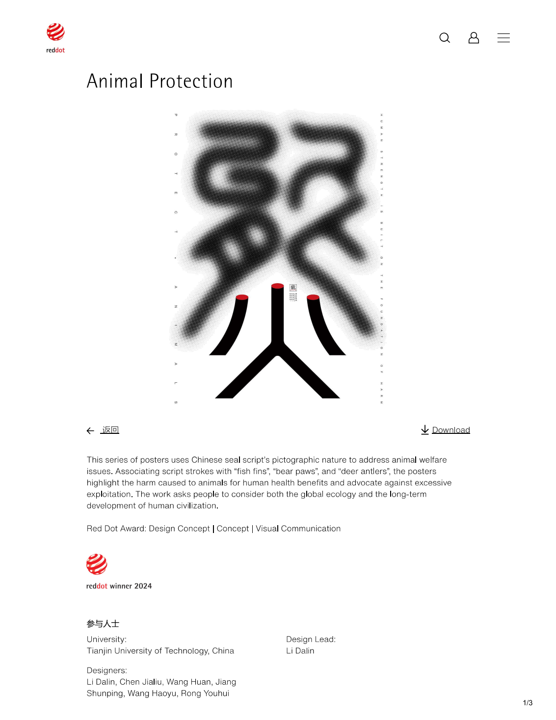 近日,由我校聋人工学院教师李达林和5名听障本科生组成的师生团队设计的海报作品《保护动物》(Animal Protection)荣获2024年度德国红点奖概念设计类的“红点”奖项。