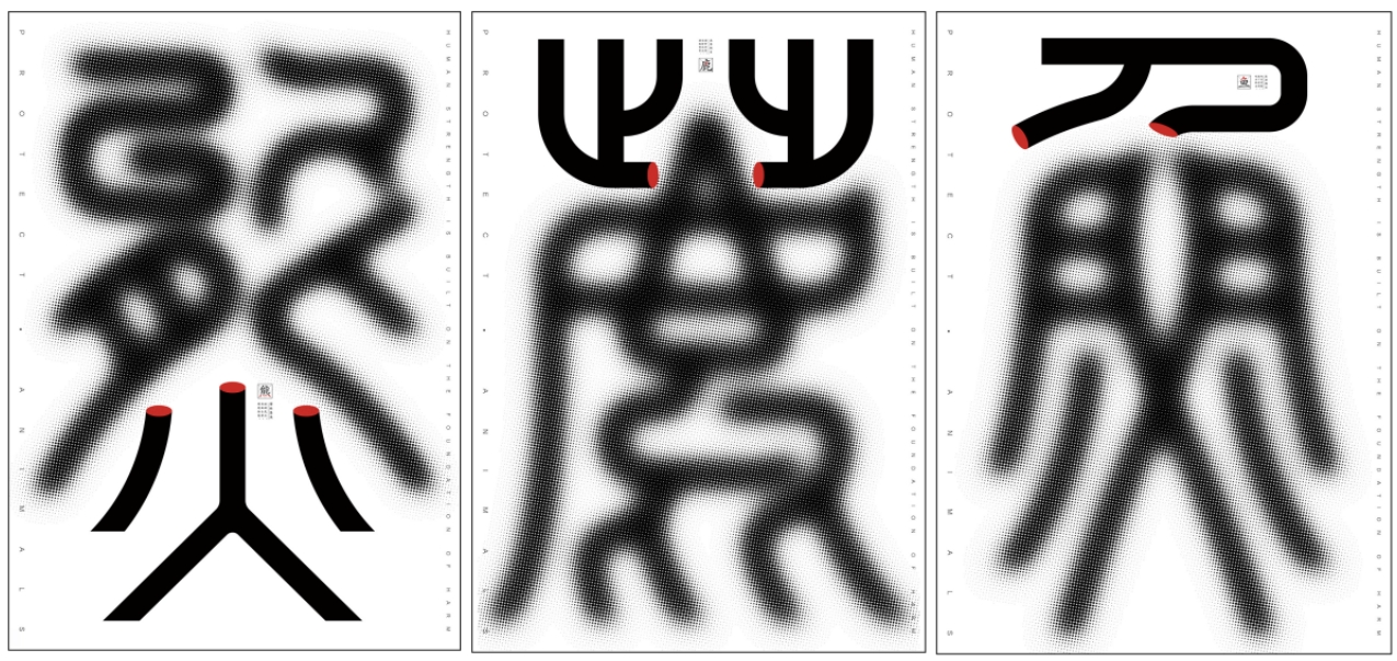 作品从保护自然生态的角度出发,以篆体字为创意点,来表达“保护动物”的理念。篆体字在艺术表现上具有古朴、凝重的气息。其线条形态丰富,有粗细变化和曲直对比。作品通过对篆体字笔画的处理与“鱼的鱼翅”“熊的熊掌”“鹿的鹿茸”巧妙的产生关联,表达出人类作为生态系统的一部分,不能过度开发自然资源,不然将导致物种灭绝或生态失衡的理念。同时,呼吁大家要对生态环境和生物多样性加强认识,重视对动物的保护,通过建立自然保护区、动物园、野生动物繁育中心等,保护濒危物种,维护生物多样性。