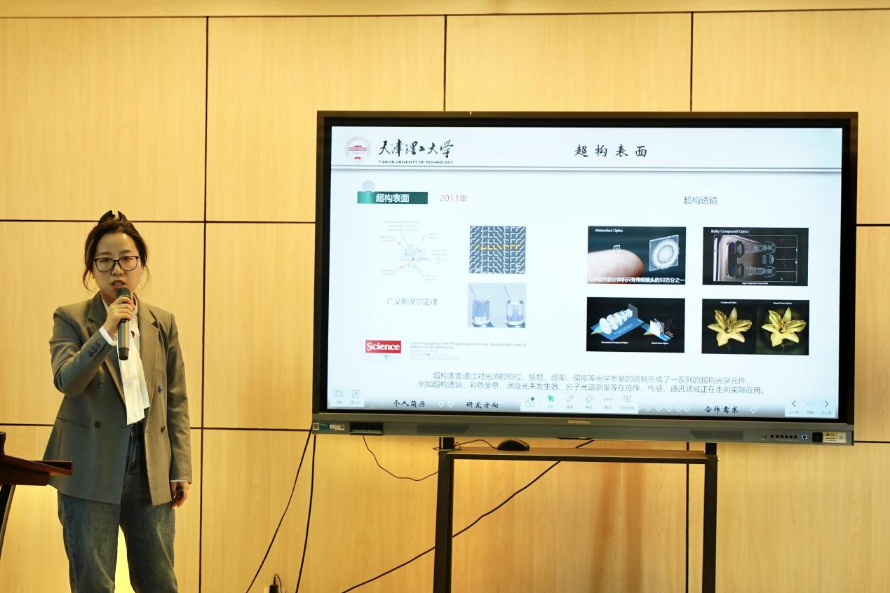杨睿作题为“基于片上超构表面的光场调控”的学术报告。她介绍了基于片上超构表面的片上到片上,片上到片外以及片上波前的光场调控原理,演示了片上三维全息、动态全息、片上超构透镜以及片上光束整流等先进的微型光学器件。