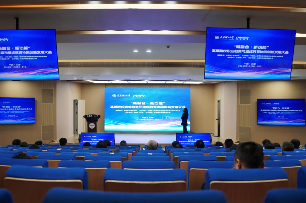 在大会报告环节,厦门大学继续教育学院院长许和山、哈尔滨工业大学(威海)继续教育学院院长张策、天津工业大学继续教育学院院长武恩均、浙大城市学院继续教育学院院长童晓明、中国成人教育协会职继数字化建设专业委员会常务副理事长兼秘书长原泉泉、弘成教育柳丽等专家围绕职业教育和继续教育融合发展态势、培养模式、数字化赋能实施、学历继续教育改革、非学历教育建设和发展等方面分享了研究成果,进行了深入探讨和交流。