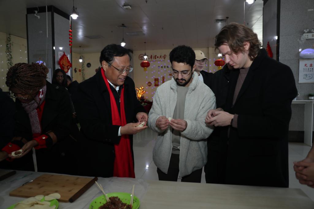 辞旧迎新,逢新一年。1月28日除夕中午,学校举办国际学生新春慰问活动。校领导刘东志、练继建、许瑞、王铁、冯骅、苏荣华出席,相关职能处室和学院负责同志参加,一起看望并慰问了春节期间留校的国际学生,向大家送去了学校的深切关怀和新春的诚挚祝福。
