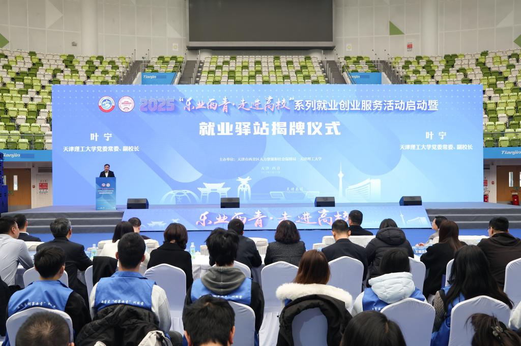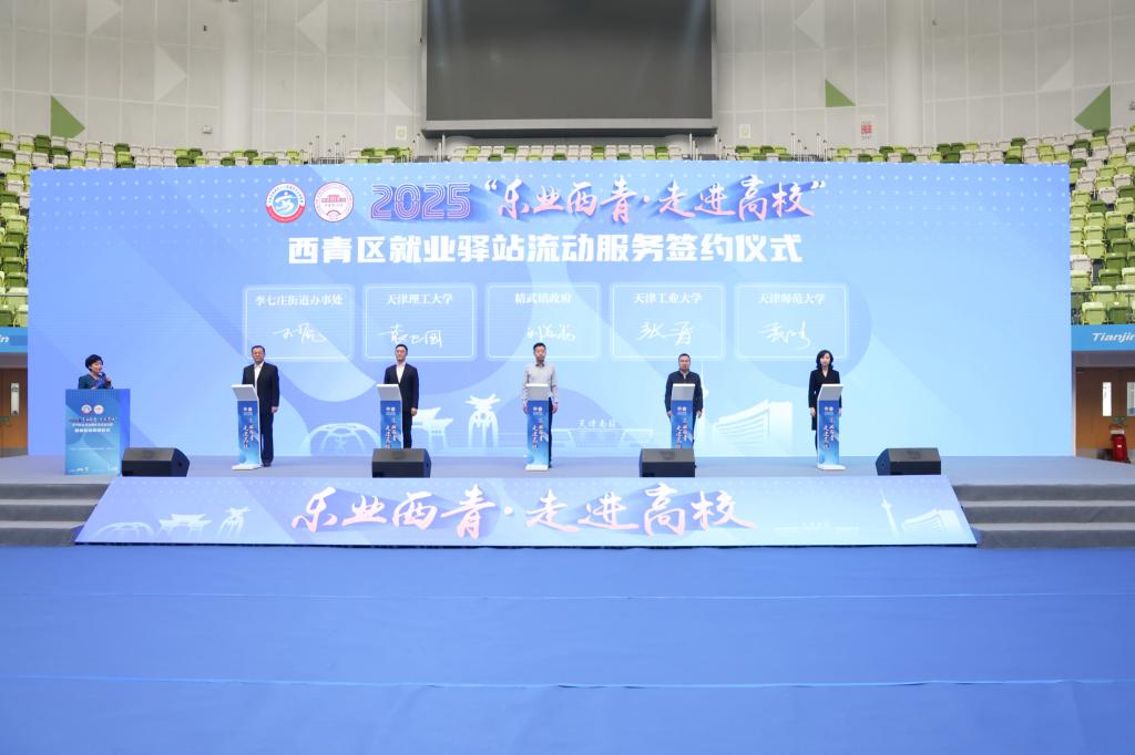 招聘会现场同步开展2025年“乐业西青·走进高校”系列就业创业服务活动启动暨就业驿站揭牌仪式。叶宁表示,学校和西青区在产学研合作、人才培养、就业创业等方面形成了优势互补、共建共享的良好合作态势。本次活动是新形势下校地、校企共同发展、共建人才培养新模式的重要举措,希望双方能够以此次活动为契机,持续探索校地企合作新领域、新途径。启动仪式上,学校党委学生工作部与李七庄街道办事处进行了“就业驿站流动服务点”签约,并与天津青奥华阳科技有限公司现场签订专项创业服务协议。
