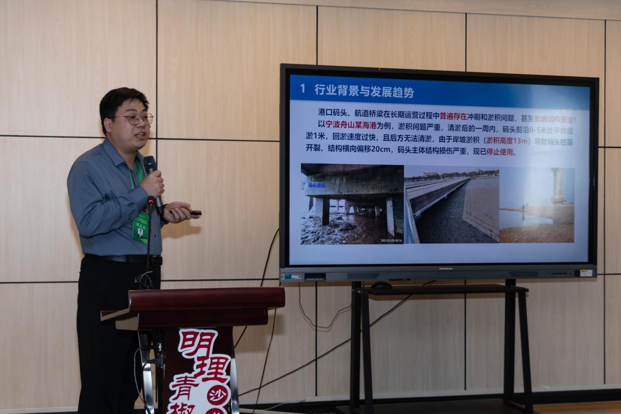 刘孟孟作题为“水工结构智能监测设备研发与应用研究”的报告。他基于水-土介质传热原理和分布式光纤测温技术耦合的水工结构冲淤设备研发过程,通过理论分析、数值仿真和模型试验,验证了该技术的可行性。研发样机通过国家计量测试,成品已在宁波舟山港示范应用10套。