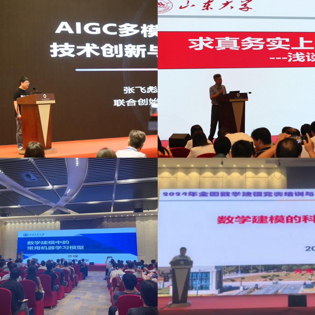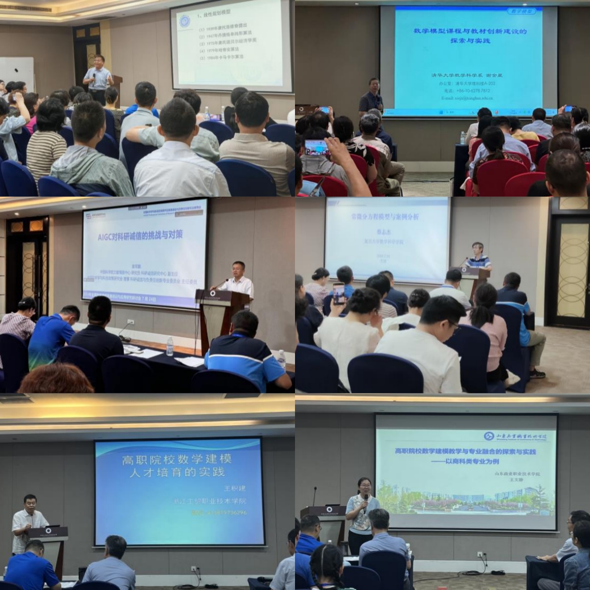 无界AI联合创始人兼CTO张飞彪、山东大学刘保东教授、西安交通大学乔琛教授和江西应用技术职业学院凌巍炜教授分别作了“AIGC多模态大模型技术创新与产业实践”“求真务实上水平 群策群力谋发展—浅谈山东高校数学建模活动的探索与实践”“数学建模中的常用机器学习模型”和“数学建模的科教赛融汇创新与实践”的专题报告。专家们的报告紧跟时代和应用研究前沿,内容充实而精彩,受到了与会教师们的称赞和欢迎,引起了热烈讨论与反响。