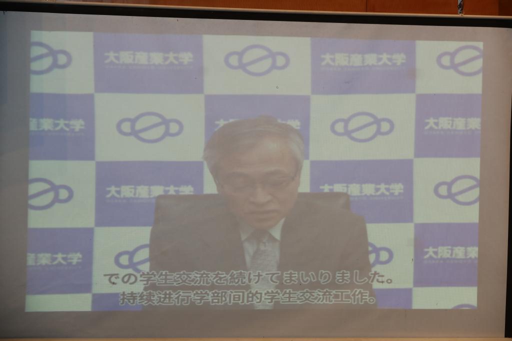 日本大阪产业大学校长小川和彦通过视频致辞,期望毕业生们能够运用所学的知识和技能,开拓属于自己的人生之路。