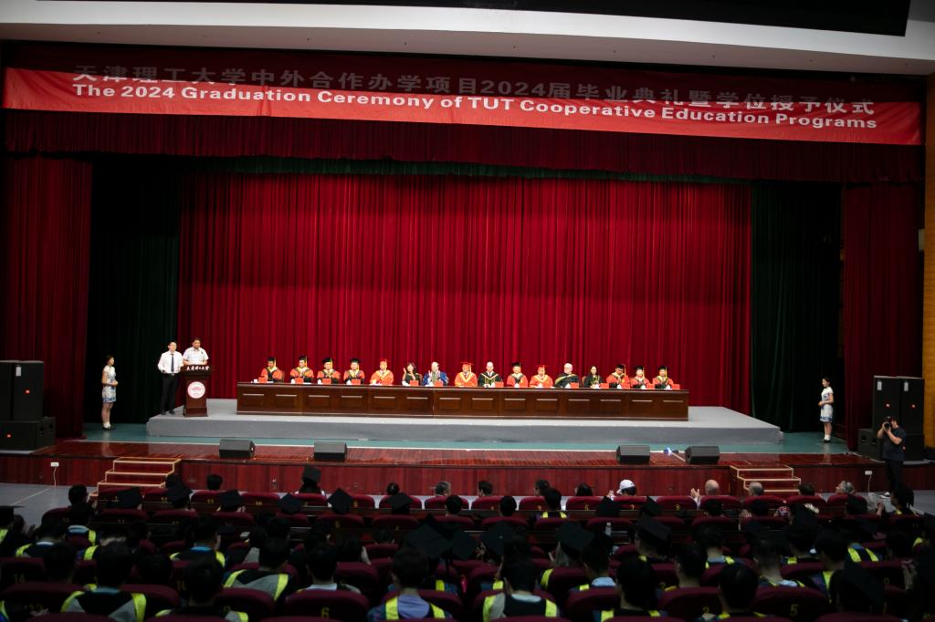 6月22日下午,学校中外合作办学项目2024届毕业典礼暨学位授予仪式在大学生活动中心举行。校党委副书记、校长练继建,党委常委、副校长叶宁,党委常委、副校长王铁,加拿大魁北克大学席库提米分校校长Ghislain Samson、加拿大汤姆逊大学校长Brett Fairbairn、日本大阪产业大学经营学部部长浜崎章洋等嘉宾出席典礼。