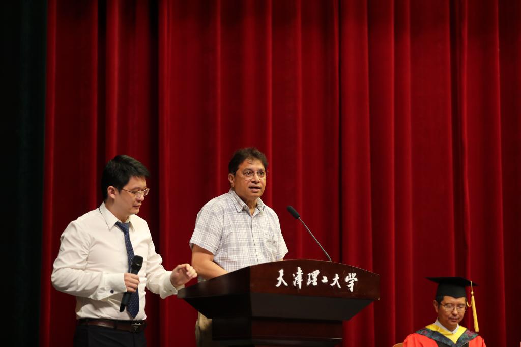 加拿大汤姆逊大学经济系教授Hafizur Rahman作为教师代表发言,回顾了与学校20年的合作历程,对学生们的努力和成就表示高度赞扬。