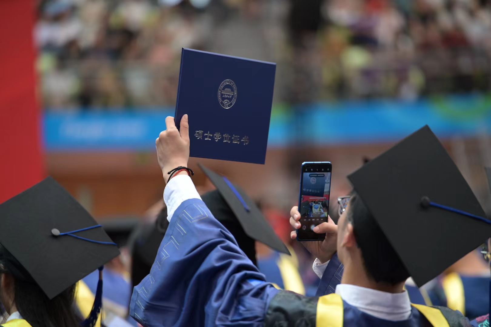 研究生毕业生代表、化学化工学院研究生阎浩冉在发言中分享了自己的科研感悟,表达了对学校和老师们的崇高敬意和衷心感谢。他号召大家牢记“重德重能,求实求新”的校训,不忘新时代青年的责任与担当,为强国建设、民族复兴贡献天理人的力量。