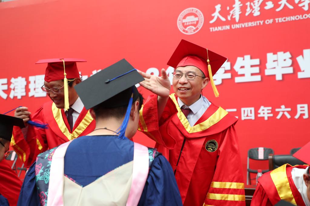 6月22日,学校2024年学生毕业典礼暨学位授予仪式在体育馆举行。校领导刘东志、练继建、陈胜勇、王铁、冯骅、苏荣华以及相关部门、各学院主要负责同志出席,并为获得学位的毕业生拨正流苏。毕业典礼由党委常委、副校长叶宁主持。