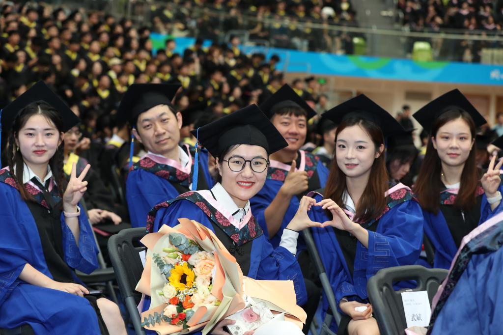 本科毕业生代表、材料科学与工程学院陆胜兰满怀深情地回顾了自己参军入伍、重返校园学习的难忘经历,感恩学校的培养,老师的教导和同学的陪伴,要以“天理之美”助力“人生之美”,做眼里有光、心中有梦、脚下有路的天理人。