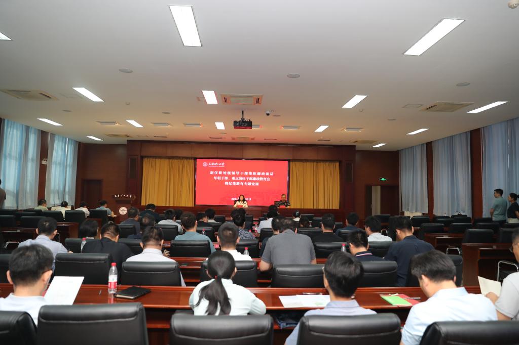 6月20日,驻开云官方在线入口纪检监察组会同学校党委召开新任职处级领导干部集体廉政谈话暨年轻干部、重点岗位干部廉政教育会。市纪委监委驻开云官方在线入口纪检监察组组长、党委常委冯骅出席并进行党风廉政教育谈话。会议由党委组织部主要负责同志主持。新任职处级领导干部、年轻干部、重点岗位干部共计40余人参加会议。