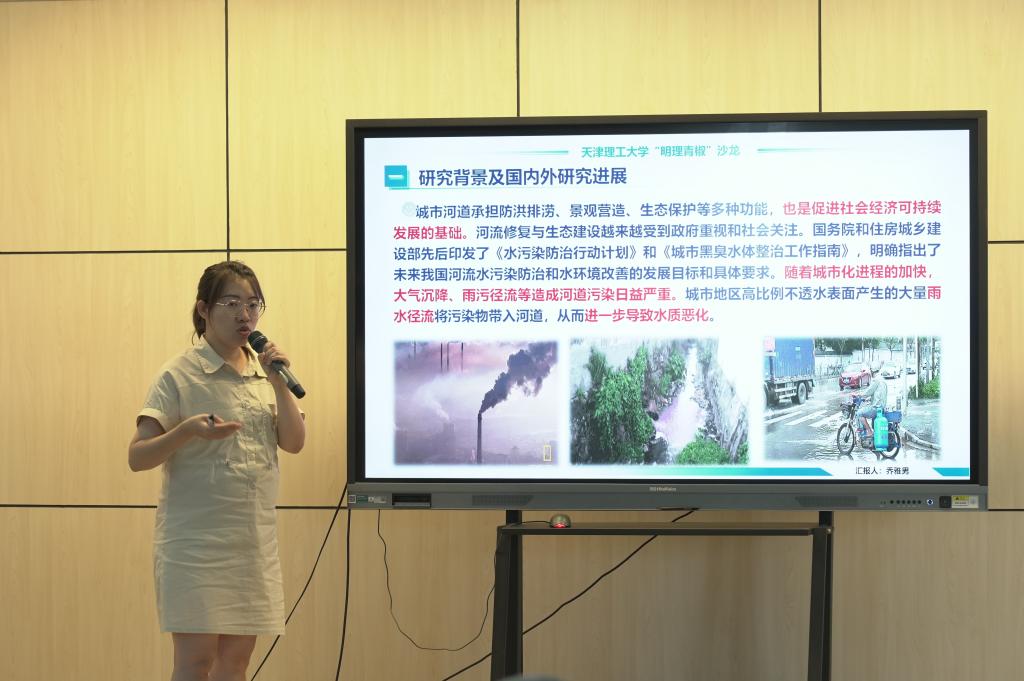 乔雅男以“复合生态浮床布设下城市明渠缓滞水流运动规律和净化作用研究”为题,介绍了在城市河道复合生态浮床作用下明渠流动分区及阻力特性、考虑流量分配和净化效率的明渠复合生态浮床布设方式、影响复合生态浮床布设的因素,以及在天津中心城区河网复合生态浮床布设及净化补水综合调控等方面开展的研究。