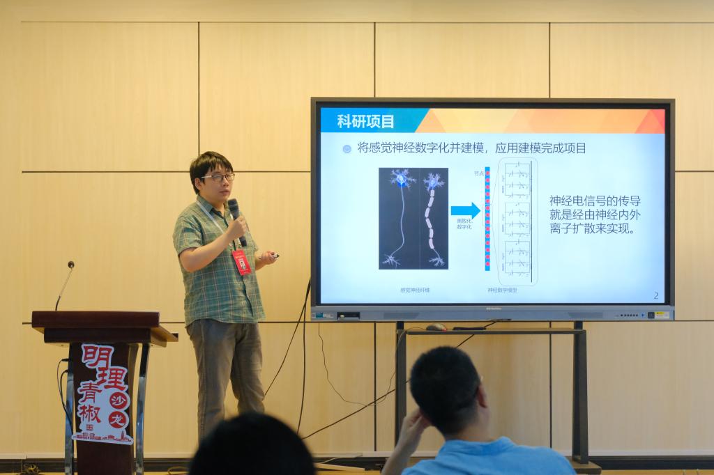 何思彧围绕“神经传导的数学表达及神经选择性刺激研究”,介绍了利用数学建模形式研究选择性刺激神经问题,重点对神经模型、刺激传导模型以及解决的问题进行了说明。他还提出了今后的科研方向,一是继续深入研究人体电生理仿真、神经模型等问题;二是扩展神经数字化模型在不同领域上的应用,并与其他领域进行交叉融合;三是寻找更加契合学科发展目标的新研究方向。