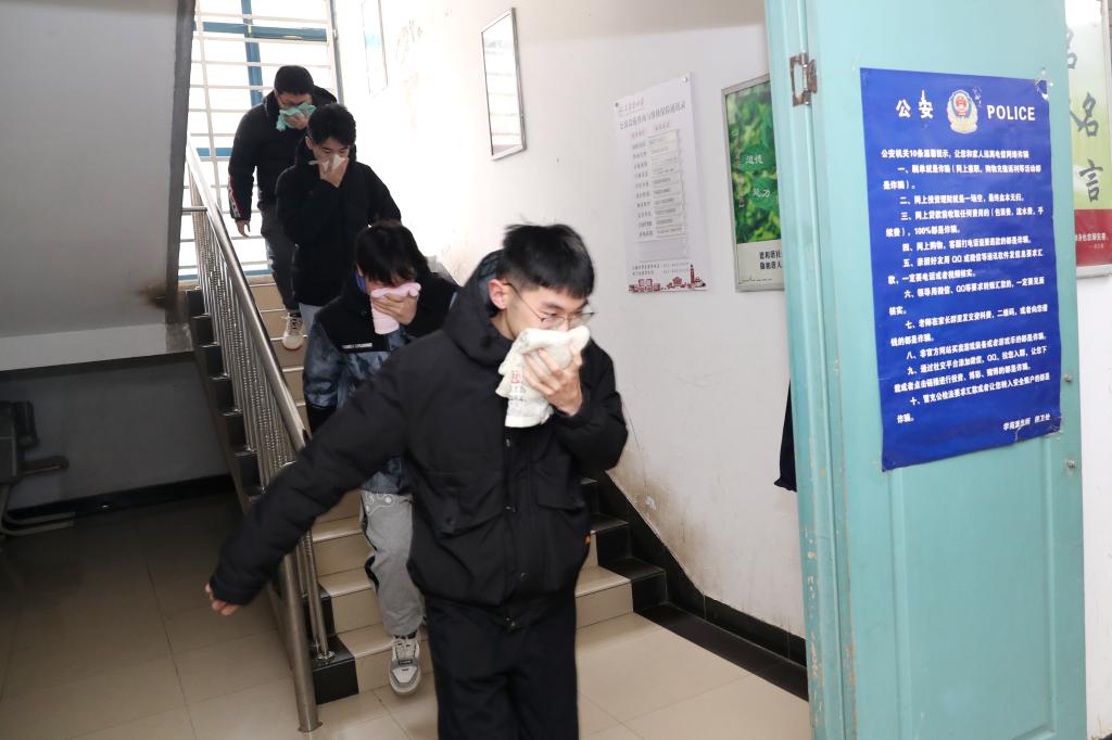 演练模拟宿舍楼某房间和食堂后厨起火,烟感探测器报警,保卫处立即启动应急预案,按照“1、3、5”原则(1分钟邻近人员先期处置、3分钟在岗班次到场扑救、5分钟增援力量协同作战)展开行动,演练中充分发挥微型消防站作用,消防维保人员、物业人员和食堂工作人员各司其职,协同配合,现场灭火及应急疏散逃生顺利完成。