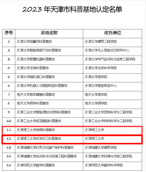 近日,天津市科技局公布了2023年天津市科普基地认定名单,我校“开云官方在线入口物理科普基地”“开云官方在线入口化学化工科普基地”成功入选。