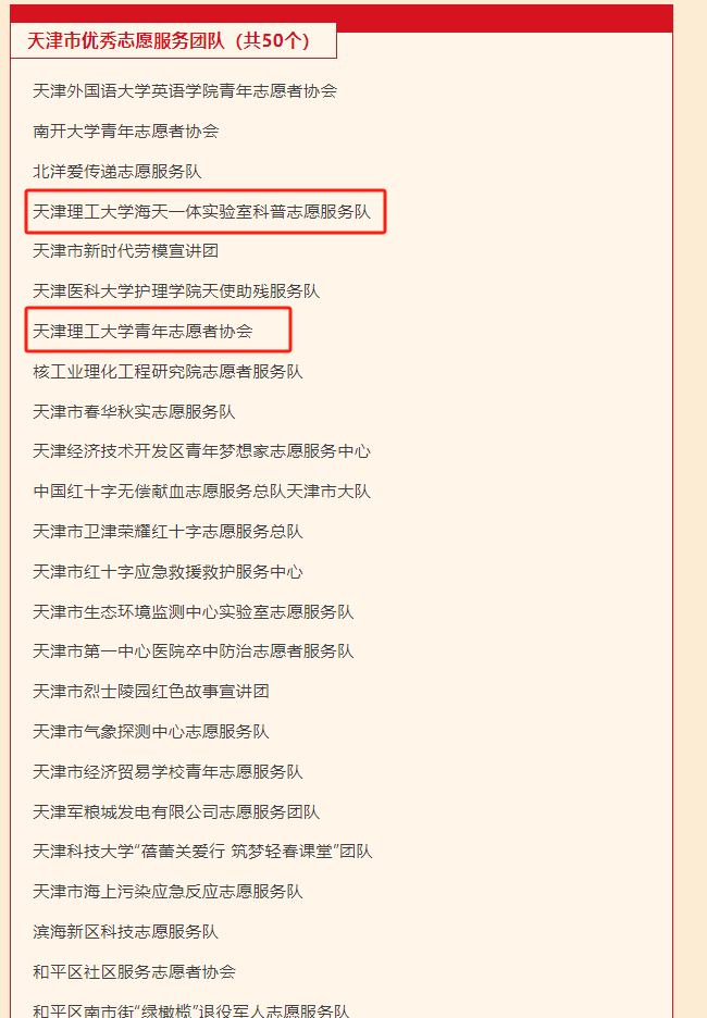 日前,在市委宣传部、市文明办等21个部门联合组织开展的2023年度天津市学雷锋志愿服务“六个一批”先进典型宣传推选活动中,经宣传发动、组织推荐、专家评审等环节,学校海天一体实验室科普志愿服务队、学校青年志愿者协会获评“天津市优秀志愿服务团队”荣誉称号,“双红向未来,志愿暖津城”开云官方在线入口红十字会志愿服务项目获评“天津市文明实践志愿服务项目大赛铜奖”。
