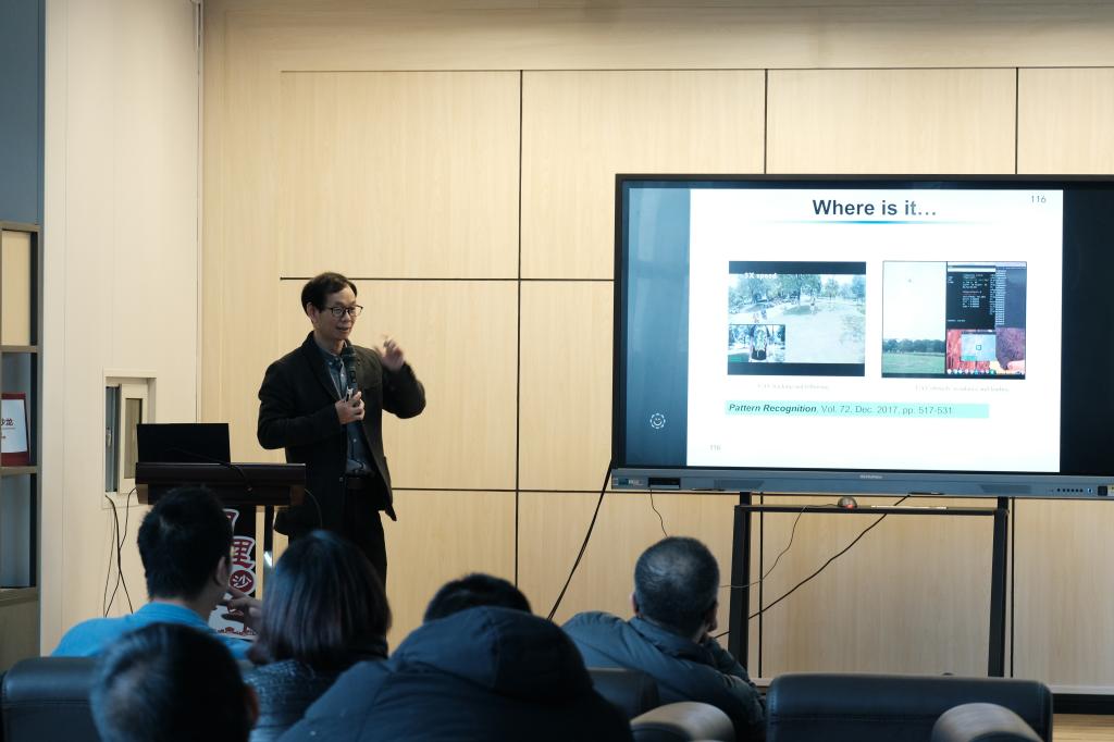 陈胜勇以“人工智能与机器视觉”为题,介绍了人工智能的发展历程、发展现状与影响,以及机器视觉系统的核心理论和关键技术,阐述了科研团队在机器视觉与人工智能领域的研究成果和应用场景,尤其是在系统中的目标物检测跟踪与运动状态分析方面取得的重要研究成果,并展示了机器视觉在机器人、无人机、工业自动化、智能安防、智慧城市等领域和载体上的具体应用。