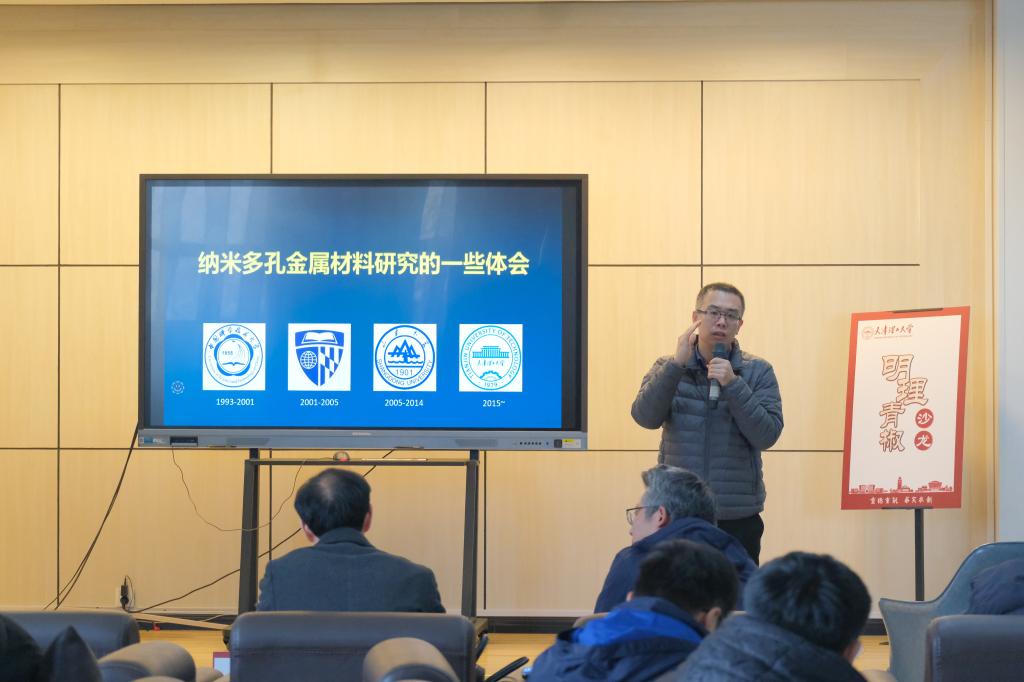 丁轶以“纳米多孔金属材料研究的一些体会”为题,分享了在科研方向选择、职业规划选择、科研团队选择上的感悟和体会,特别是在做人做事中将科研从一份工作发展到一种追求,最终升华成一份使命的心路历程,并就青年人才发展、科研团队组建和可持续发展、跨学科协同创新等方面和学员们做了探讨,强调科研团队建设在当下科研工作中的重要性和必要性。他还就纳米多孔金属的材料体系、新颖特性、高效催化和新型电池等方面开展的广泛研究和学科交叉向青年教师作了重点阐述,并进行了深入探讨。