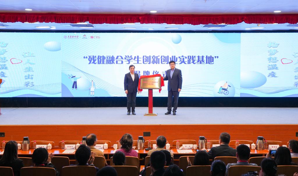 本次大赛还举行了“残健融合”学生创新创业实践基地揭牌仪式,叶宁和于强共同为基地落成进行揭牌。该实践基地由我校聋人工学院、恩三公益、易才集团三方共建,旨在进一步深化融合教育理念,促进听障大学生和健听学生之间的交流与合作,为大家提供一个共同成长、互相学习、协同创新的空间。基地还将联合政府部门、公益组织与企业等多方社会资源,为学生提供创新创业项目的孵化和培育服务,为学生开展创新创业活动提供保障。
