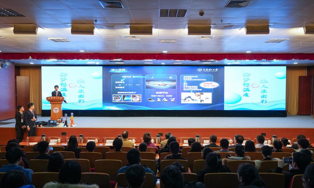 随后,我校聋人工学院和西安美术学院的“Slow Life-居家生活应用一体机”“传承与创新:津派非遗在时尚领域的年轻展现与推广”“聆听心声-基于数字沙盘的听障生投射疗愈解决方案”“非遗之‘皮’,‘雕’当代之势”四个项目进行了现场路演,争夺大赛特等奖。经过展示和评审,我校聋人工学院学生团队的“Slow Life——居家生活应用一体机”项目脱颖而出并获得大赛特等奖。与会嘉宾为获奖团队颁发了奖杯,为大赛优秀组织奖及优秀指导奖颁发了荣誉证书。