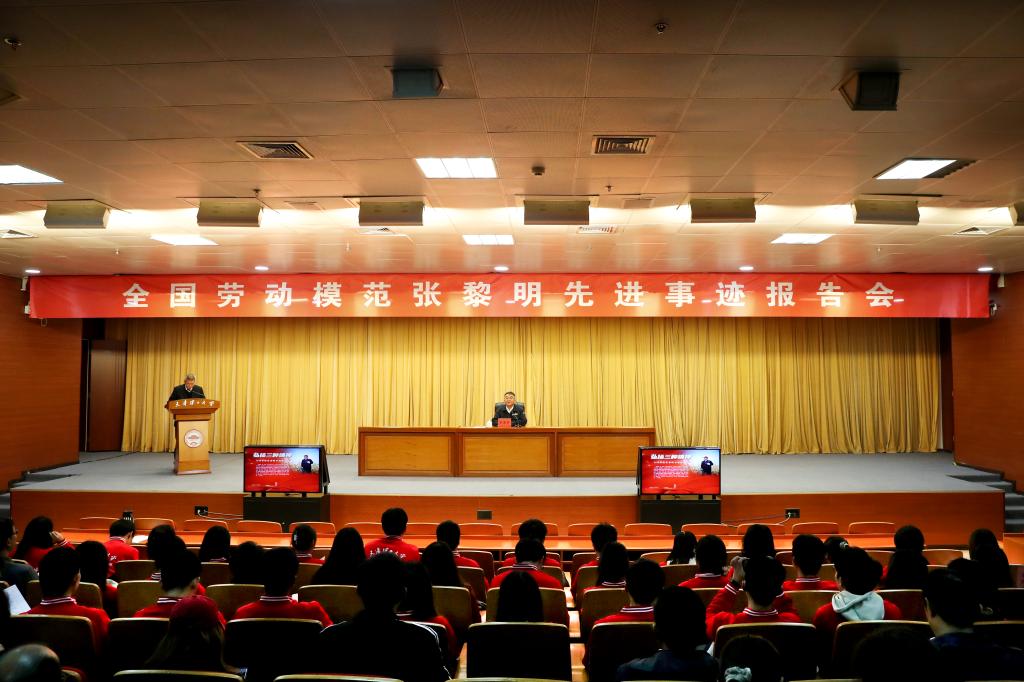 为深入学习贯彻习近平总书记致首届大国工匠创新交流大会贺信精神和全国工会第十八次代表大会会议精神,大力弘扬劳模精神、劳动精神、工匠精神,11月9日,我校邀请全国劳动模范、第七届全国道德模范、全国优秀共产党员、津门工匠、海河工匠、中央企业“百名杰出工匠”、时代楷模、改革先锋、最美奋斗者张黎明来校为师生作题为《弘扬劳模精神、劳动精神、工匠精神——不断奋斗、为民创新》的报告。全体处级干部、青干班学员、教师代表、学生代表聆听了报告。报告会由校党委副书记杜长有主持。
