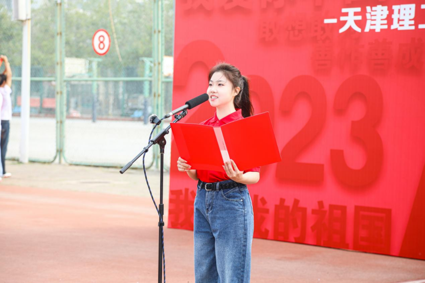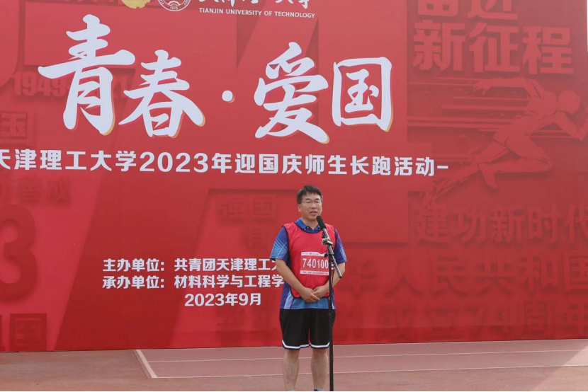 学生代表郑茹丹带领全体师生,面向国旗许下“请党放心,强国有我”青春誓言。教师代表、材料科学与工程学院李文江教授向广大师生发出了“爱国必先勤学、勤学必先强体”的倡议。