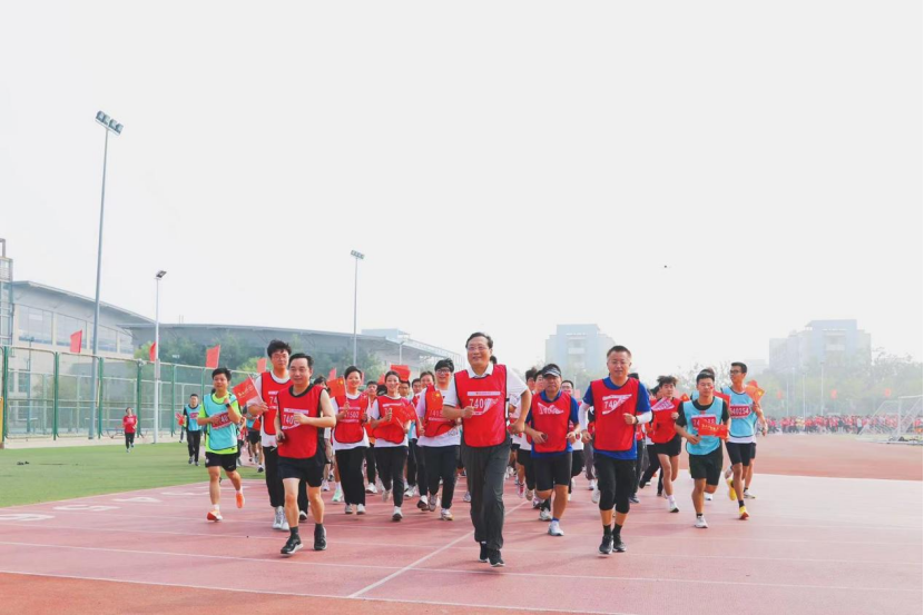 校党委书记刘东志宣布长跑活动开始,并和师生们一起参与活动。