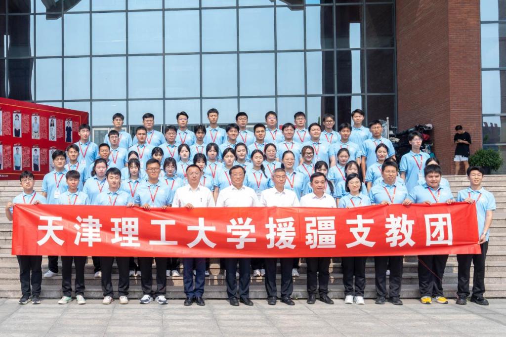 会后,与会校领导与实习支教团合影留念。在未来三个半月的支教工作中,支教团全体师生将高举旗帜、甘于奉献,树立天理师生良好形象,在助力祖国边疆建设中再立新功,为促进民族团结进步和边疆繁荣发展贡献天理力量!