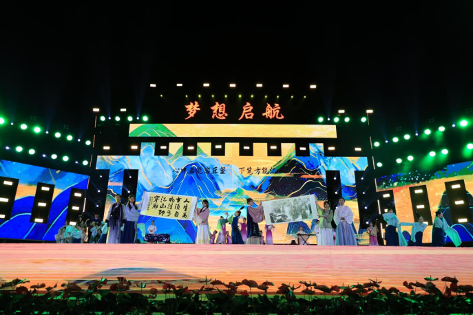 中华优秀传统文化是中华民族的生命血脉和精神命脉,情景表演《古韵风华》选取中华优秀传统文化中的代表元素,多场景展示汉服、国画、书法、茶艺、团扇的独特魅力与传承创新,天理学子浸润在博大厚重、自信包容的中华优秀传统文化氛围中,坚定文化自信,推动文化繁荣。