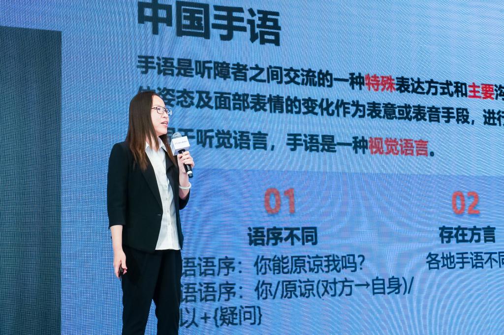 签约仪式前,聋人工学院副院长袁甜甜教授围绕项目背景、技术壁垒、成果优势及社会价值等方面作了专题报告。“尔语”一词出自唐代诗人杜牧的“愿尔闻我语,欢喜入心肠”。“海河•尔语”聋人手语理解大模型基于昇腾AI基础软硬件平台,采用全场景AI框架昇思MindSpore,致力于研发更精准的“手语——汉语”翻译产品,并将大模型研究成果应用于智慧教育、智慧医疗、智慧金融等多个领域,帮助听障人群更便捷、更准确地表达和传递信息,拓宽与外界的交流通道。