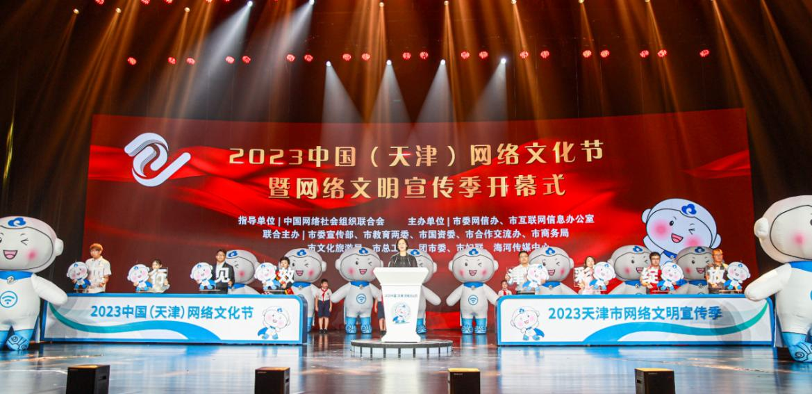 9月5日,由中国网络社会组织联合会指导,市委网信办联合市委宣传部、市教育两委、市国资委、市合作交流办、市商务局、市文旅局、市总工会、团市委、市妇联、海河传媒中心共同主办的2023年中国(天津)网络文化节暨网络文明宣传季开幕式在梅地亚大剧院举办。市委常委、市委宣传部部长沈蕾出席并宣布本届网络文化节开幕。我校马克思主义学院辅导员万柯彤、计算机科学与工程学院2020级信息安全专业学生王可意应邀参加开幕式活动