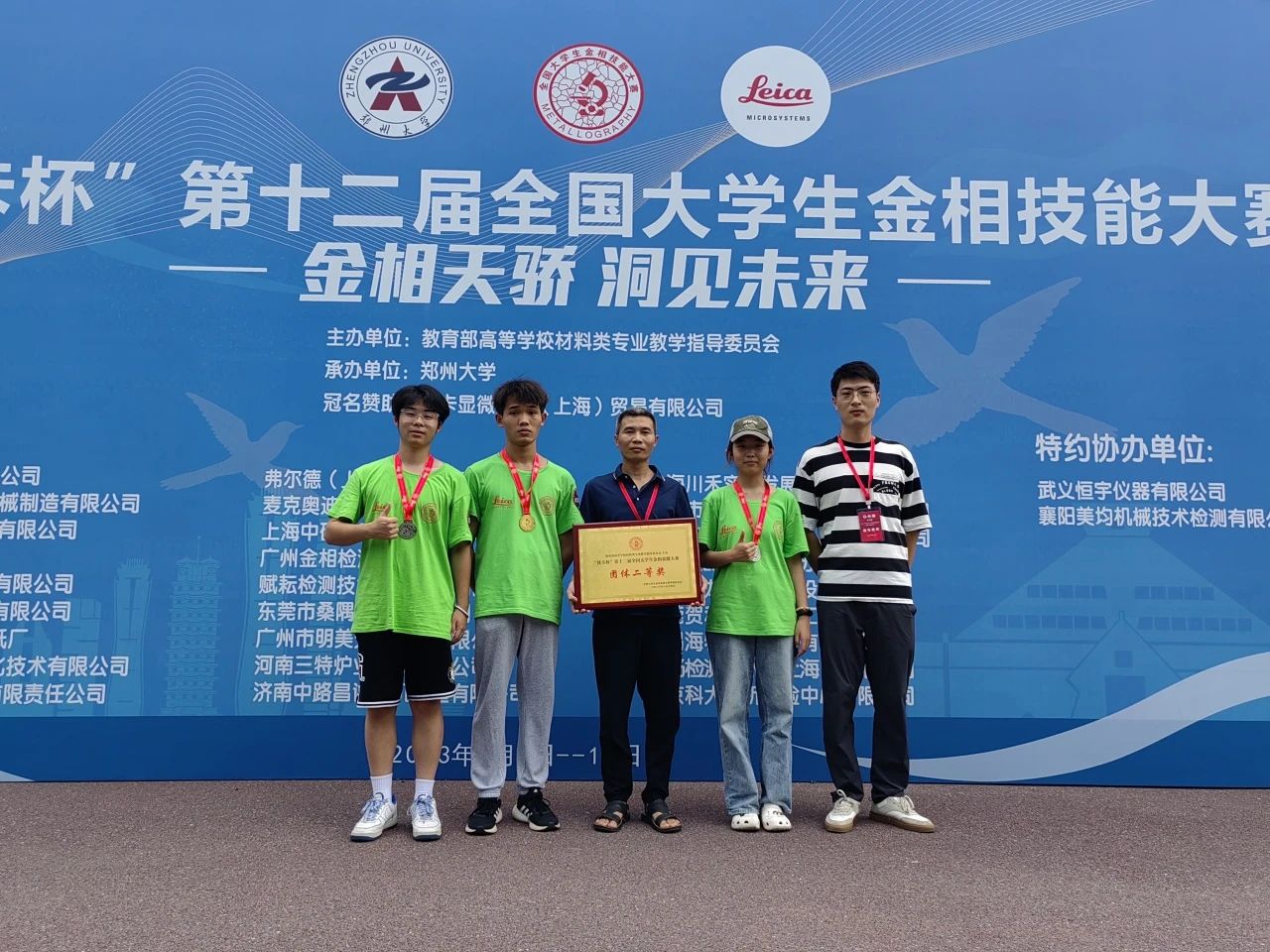 近日,由教育部高等学校材料类专业教学指导委员会主办、郑州大学承办的“徕卡杯”第十二届全国大学生金相技能大赛(决赛)圆满落幕。材料科学与工程学院2021级学生农城沣、冯飞翔、卢嘉瑜等在大赛中取得突破性成绩,获得一等奖1项、二等奖2项、三等奖3项,学校获得团体二等奖。