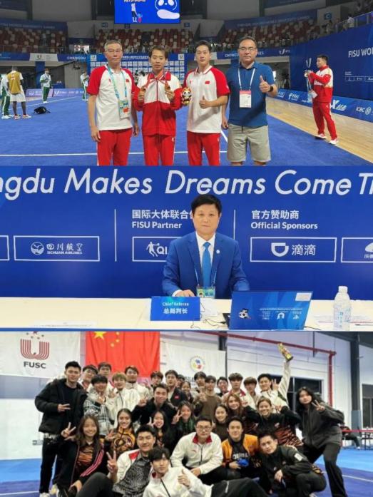 学校成功连任大学生体育协会民族传统体育分会主席单位,积极推动武术运动项目的普及与发展,以赛事、培训、文化交流为抓手,充分发挥市少数民族传统体育武术项目训练基地的辐射作用。高水平武术队参加2022年、2023年全国大学生武术套路锦标赛,夺得30枚金牌,参加市第九届少数民族传统体育运动会,夺得1枚金牌。在近日举办的成都第31届世界大学生夏季运动会上,中国武术代表队由校党委副书记、中国大学生体育协会民族传统体育分会主席杜长有担任领队,由体育部教师唐玄戈担任武术套路教练,队员金哲典1人夺得男子长拳、男子刀术2个项目金牌,成为“双冠王”。