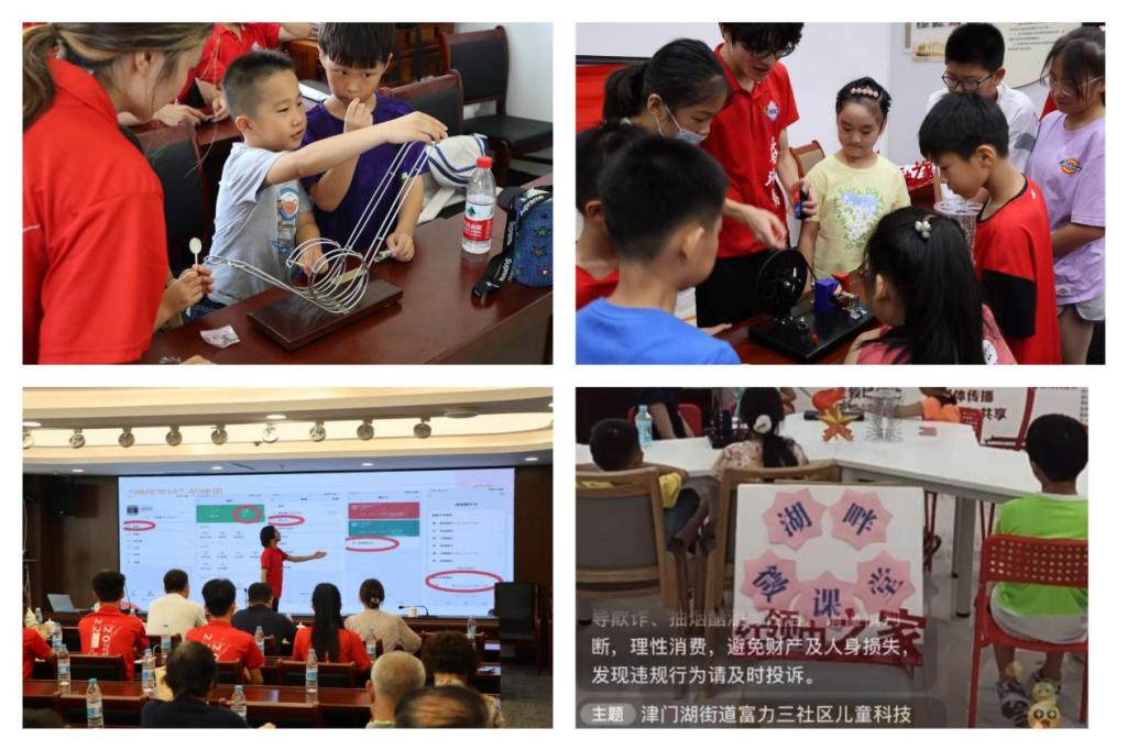 实践团前往金奥国际社区、富力三社区等8个社区,累计为百余名青少年讲授生动有趣的科技微课。期间,实践团成员还结合自身所学,创新思路,打破空间限制,开设线上直播课堂,用生活中常见现象引入讲解能量守恒、磁场与磁场线、电与磁等知识并演示实验器材操作原理,吸引了众多青少年围观学习,直播间点赞量高达4000余人次。通过直播,让更多的青少年感受科技的魅力,激发科学探索兴趣,培养青少年求知求新的主动性,助力“双减”提质增效。本次科技微课还辐射社区老年人,实践团成员为他们讲解了智能手机常见功能的使用方法,帮助老年人跨越数字鸿沟,坐上科技时代的列车。