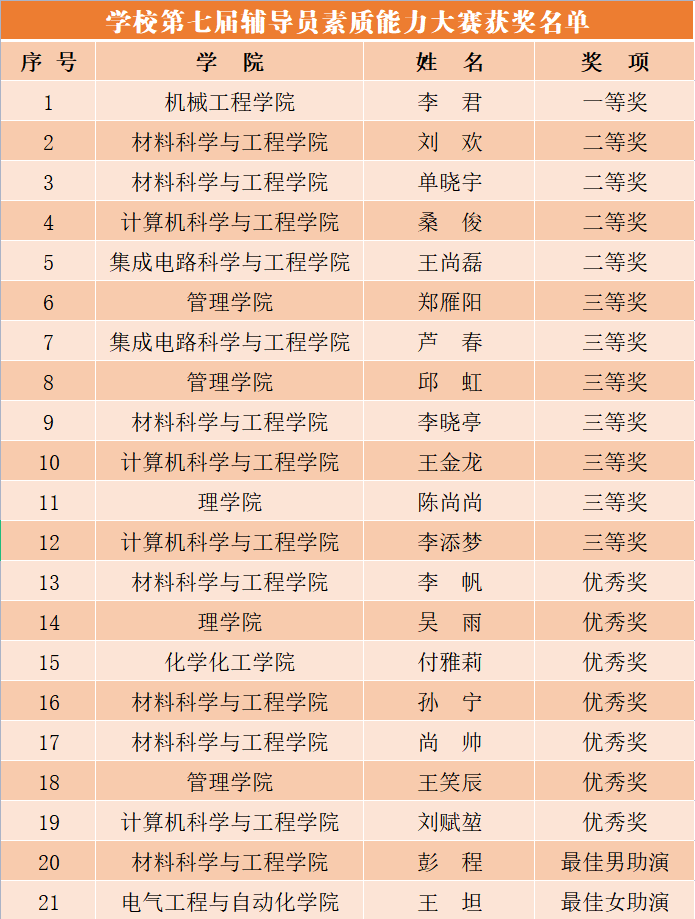 下一步,学校将以提高育人实效为重点,以强化辅导员队伍建设为抓手,发挥“四维三阶”培养体系作用,努力提升辅导员队伍整体素质能力和工作水平,为推动学校高质量发展贡献学工力量。