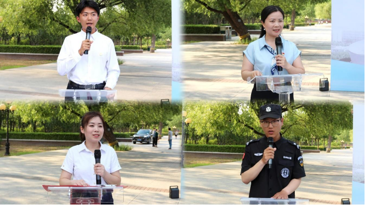 保安队员代表、天津市保总保安服务有限公司员工陈国涛表示,要带头说文明话、办文明事、做文明人,维护校园安全,规范文明执勤,勇于向不文明行为说“不”。他还倡议师生践行《天津市文明行为促进条例》,安全规范出行,共建文明校园。
