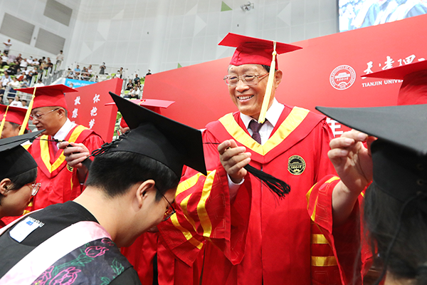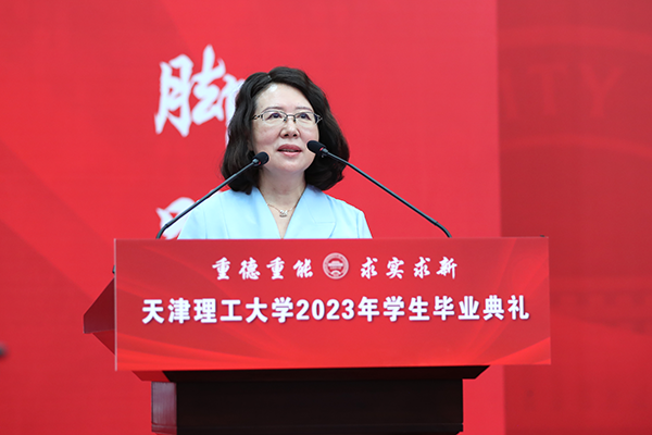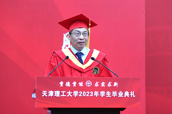 校长练继建在致辞中代表全校师生员工向毕业生致以最热烈的祝贺和最美好的祝愿!希望全体毕业生要常怀“归零”心态,做一颗“永不生锈的螺丝钉”,把对祖国、对人民的真挚情感贯穿于学业、融汇在事业,坚定不移听党话、跟党走,永远为党和人民奋斗;希望大家在奋斗中练就“宽肩膀”,扛起“重担子”,啃下“硬骨头”,努力成长为堪当民族复兴重任的时代青年;希望大家要以“赶考”状态争做开路先锋,激荡民族复兴的澎湃春潮;希望大家带着“天理人”的“名片”奔赴远方,与母校继续同心携手、并肩奋斗,为谱写中国式现代化建设的崭新篇章贡献天理力量。