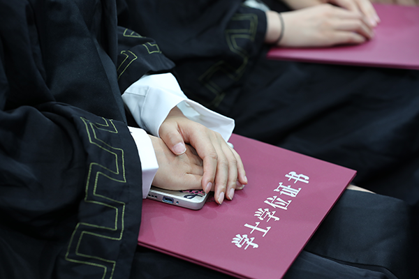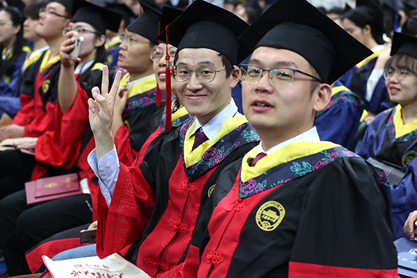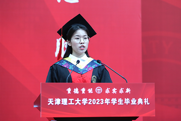 研究生毕业生代表、材料科学与工程学院博士研究生荣鑫在发言中分享了自己的科研感悟,表达了对学校和老师们的感恩之情和崇高敬意。她号召大家秉承勇攀高峰、敢为人先的科研精神,不忘新时代青年的责任与担当,为中国式现代化建设贡献青春力量!