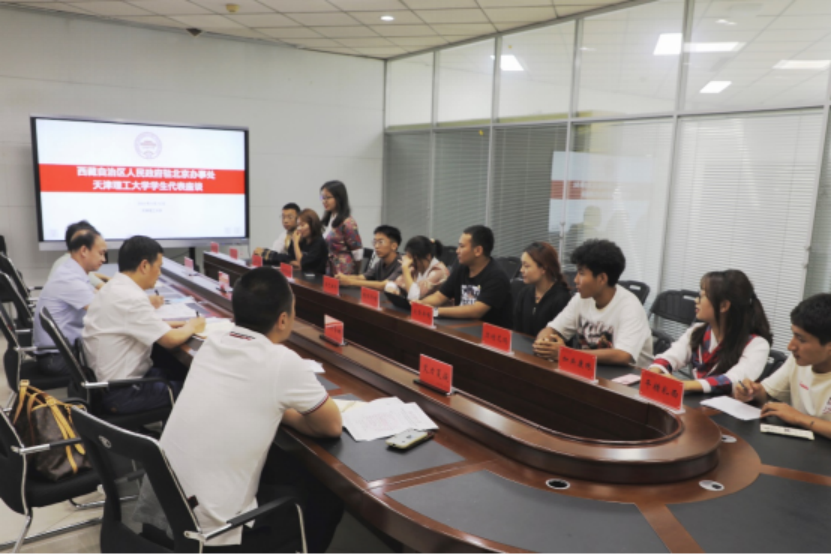 6月13日上午,西藏自治区人民政府驻北京办事处党组副主任廖波一行莅临我校走访调研。市委教育工委、市教委统战处处长祝建、市民族和宗教事务委员会民族二处处长穆怀寅陪同,校党委副书记杜长有出席座谈会。