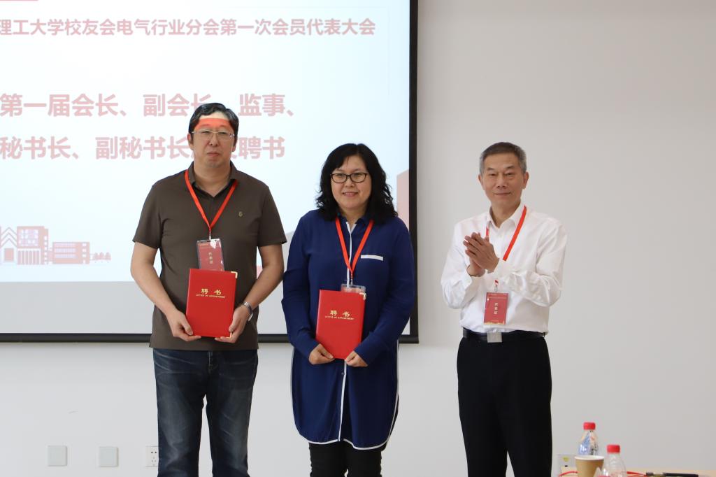 会议表决通过《开云官方在线入口校友会电气行业分会章程(试行)》,经选举表决,学院电气工程系主任邵磊当选电气行业分会第一届会长,学院党委书记余丽当选为监事,1989级校友吴海青、1996级校友宋志国当选为副会长,2001级校友孔丹当选为秘书长,经秘书长提名,2008级校友李小双和2010级闻春伟两位理事当选为副秘书长。校党委副书记杜长有、学校校友会理事长卢俊瑞为电气行业分会主要负责人及骨干成员颁发聘书并给予鼓励。