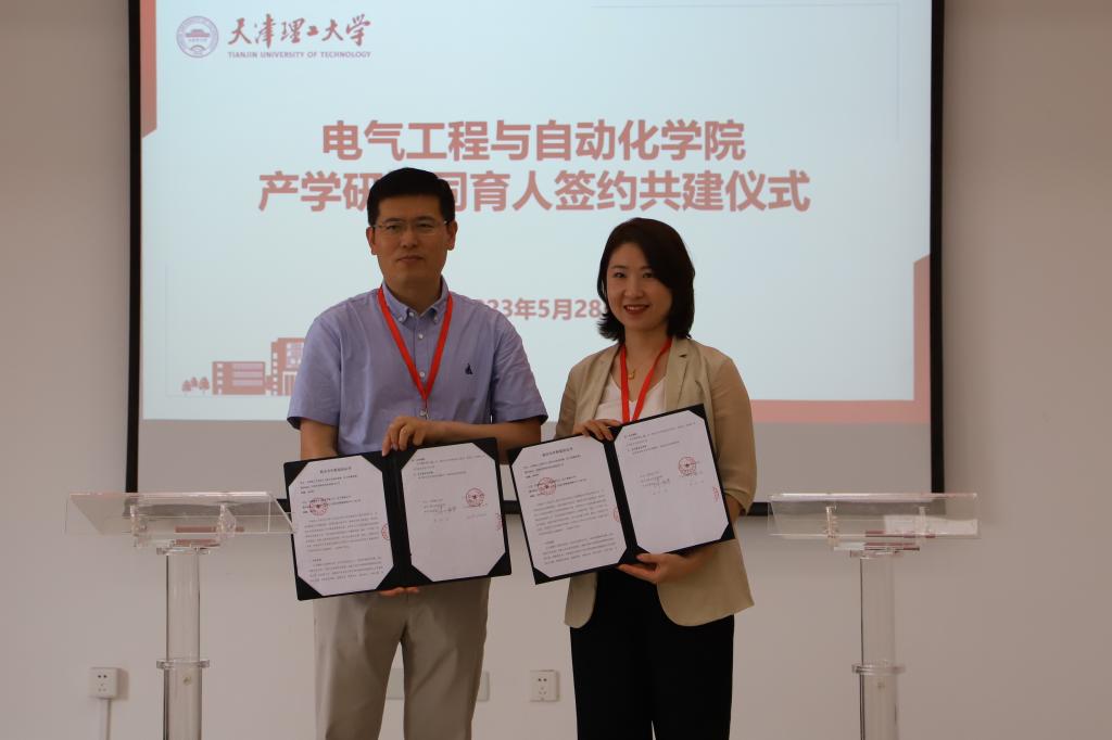 学院院长杜明星与天津安捷物联科技股份有限公司、天津理智鑫创能科技有限公司、天津楚能电力技术有限公司三家校友企业负责人现场签署产学研协同育人共建协议,开启校企协同育人新篇章,将产教融合推向新高度。