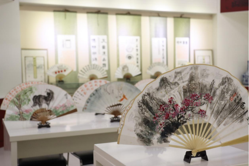 学校于近日举办“怀袖雅物文人扇,清风守正蕴廉心”扇面艺术展。