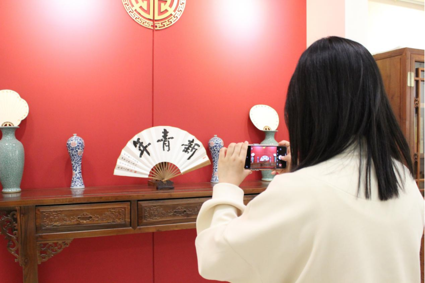 活动由扇面艺术讲解、学生作品点评及互动交流三个环节组成。相关教师向大家介绍了文人扇的构成、种类及文化内蕴。结合现场作品的创作理念、表现形式和审美取向,阐释了诗、书、画、印的内在关联和人文情怀。