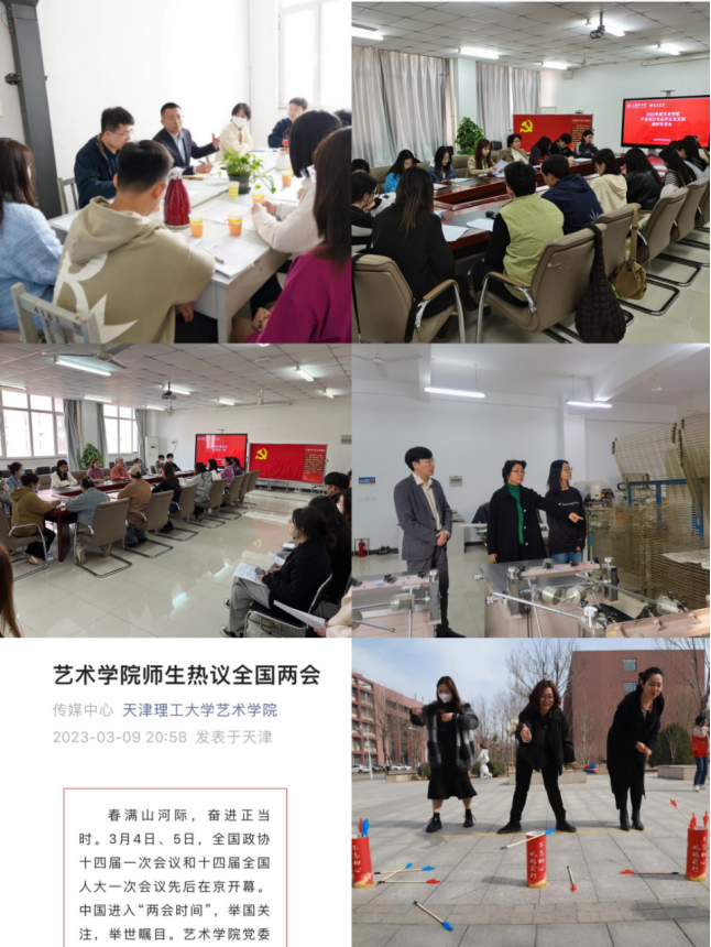 学院党委召开全院大会,部署学期工作,开展警示教育,深化师德师风教育;党政主要领导为师生讲授形势政策教育开学第一课,推进课程思政建设,持续深化“课前三分钟”,落实“三全育人”联系学生工作任务要求,坚持以优良党风带教风学风;组织师生收看并热议全国两会,引导师生提振信心,凝聚力量;联合党委安全工作部开展“提高安全意识 建设平安校园”主题活动。学院领导带队开展教学楼及学生宿舍安全大排查,组织师生进行消防演练,邀请学苑派出所警官为师生开展防电诈教育,提升安全意识;组织开展庆祝“三八”国际劳动妇女节教工趣味运动会,营造温馨氛围;开展两次学生代表座谈会,及时准确掌握学生思想动态,了解学生生活需求;有条不紊地召开党支部组织生活会和开展民主评议党员工作,深化党员交流,增进团结互助,提升党支部凝聚力和战斗力;开展“艺”研为定系列辅导,推动高质量就业。