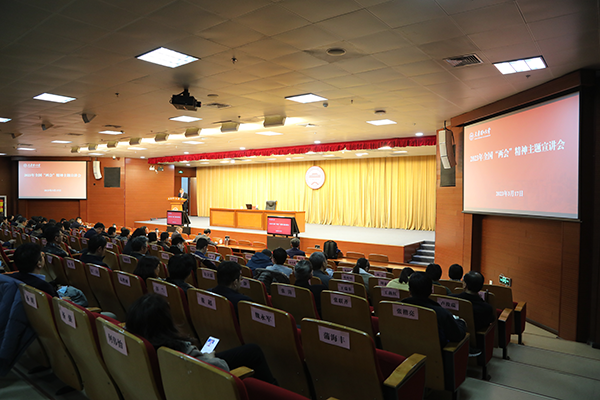 3月17日,为深入学习贯彻全国两会精神,进一步引导全体教职员工把思想和行动统一到党中央决策部署上来,学校召开全国两会精神主题宣讲会。校领导刘东志、练继建、张继东、陈胜勇出席会议,全体中层干部以及各单位、部门教师代表参加,会议由校党委副书记杜长有主持。