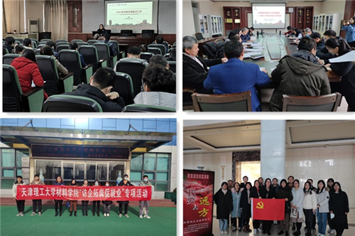 抓党建思政,促思想统一。学院召开全体教师大会,深入学习贯彻党的二十大精神,对新学期党建育人、思政教育、教育科研、校园安全等方面工作进行了详细部署,精心安排春季学期学生开学相关工作,引导全体教师努力提升学院人才培养质量、科技创新水平和服务社会能力。学院邀请西青分局学苑派出所相关同志,为学生举办新学期首场安全教育讲座,同时组织全体教师赴天津大礼堂观看地震科普教育宣传题材电影《我要去远方》,增强防灾减灾意识。为落实教育部工作要求,抢抓春季开学后促就业工作关键期,学院召开“抢抓春招关键期 全力攻坚促就业”2023届毕业生就业工作推动会,旨在凝聚共识、齐抓共管,形成“三全就业”工作合力。开学以来,相继组织师生赴天津鸿德汽车玻璃、北京环卫集团环卫装备(乐亭)有限公司、东日新能源材料有限公司、旭日化工有限公司、河钢集团唐山钢铁有限公司等十余家企业开展访企拓岗工作,并与河北省唐山市乐亭县经济开发区签订战略合作协议。