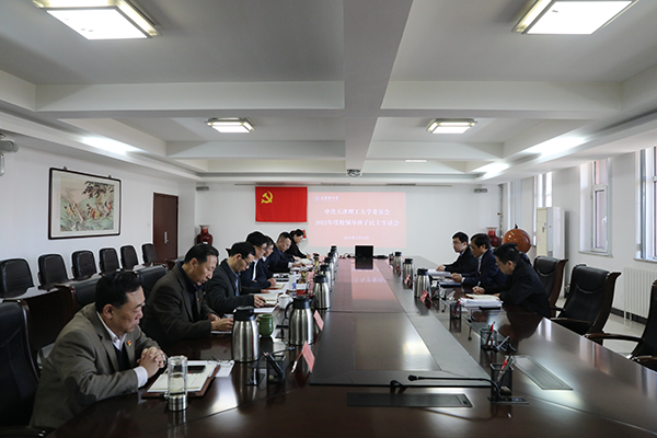 2月14日,学校领导班子2022年度民主生活会在26号楼419会议室召开。会议的主题为“全面贯彻习近平新时代中国特色社会主义思想,深刻领悟‘两个确立’的决定性意义,增强‘四个意识’、坚定‘四个自信’、做到‘两个维护’,团结带领党员干部群众以奋发有为的精神贯彻落实党的二十大作出的重大决策部署”。市委教育工委统战处处长祝建、市纪委监委第四监督检查室干部王嘉浩全程督导,校党委常委参加会议。会议由校党委书记刘东志同志主持。