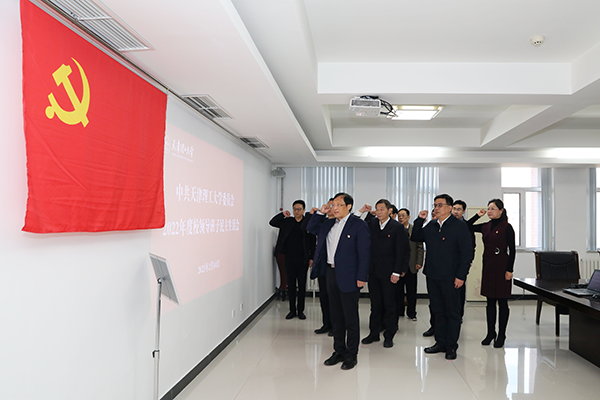 民主生活会上,校党委书记刘东志同志带领班子成员面向党旗庄严宣誓,并代表学校领导班子通报党史学习教育专题民主生活会整改措施落实情况和本年度民主生活会准备工作。随后,刘东志同志代表班子作对照检查,严格按照上级要求,认真查摆存在问题,深刻剖析根源,并提出具体整改措施。