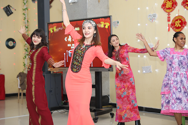留学生们精心准备了舞蹈串烧、中文歌曲演唱、书法展示等精彩表演,大家在一片欢声笑语中共同期待新的一年收获更多的美好。